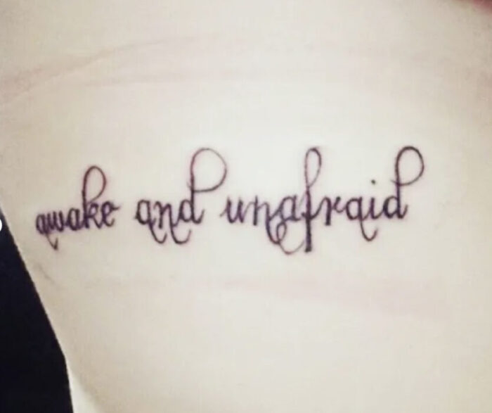 ブラジル出身の著名な作家であるマリオ・デ・アンドラーデの名言です。恐怖を乗り越えて行動する勇気を表すこの言葉は、勇猛さを表すタトゥーに最適です。